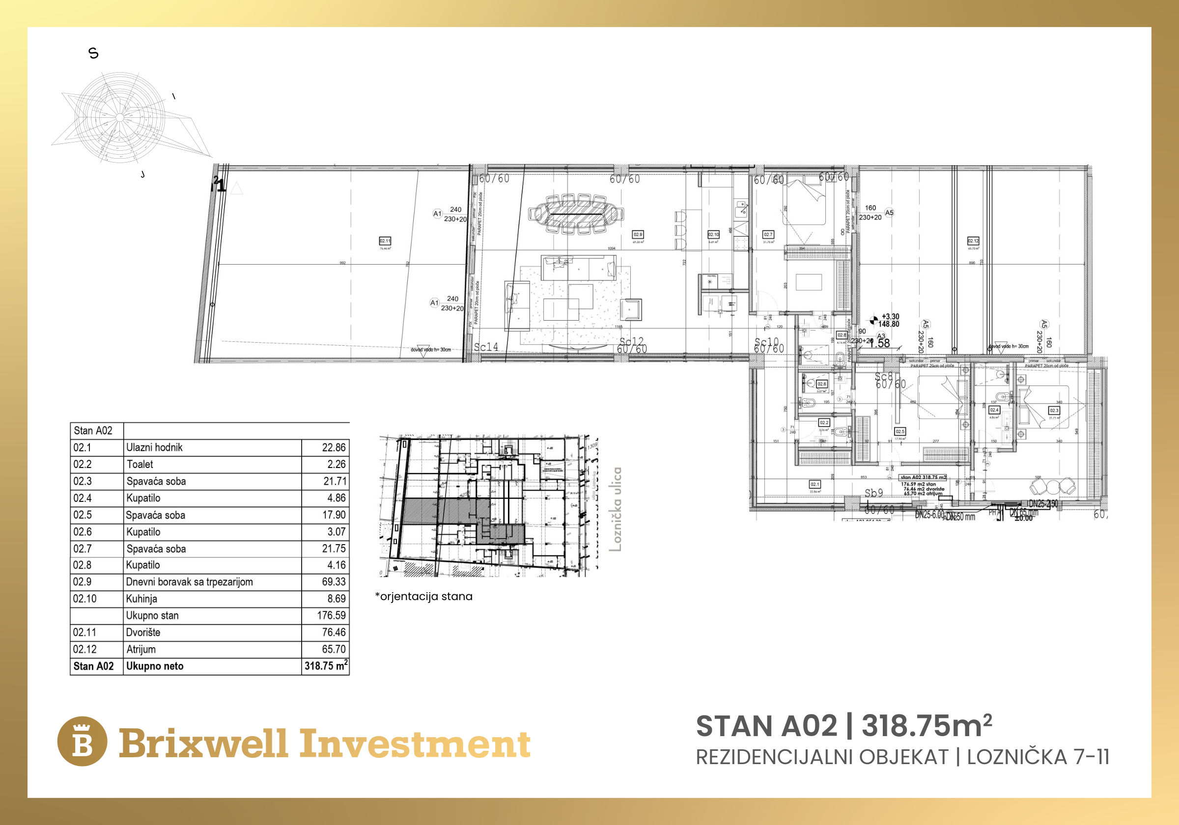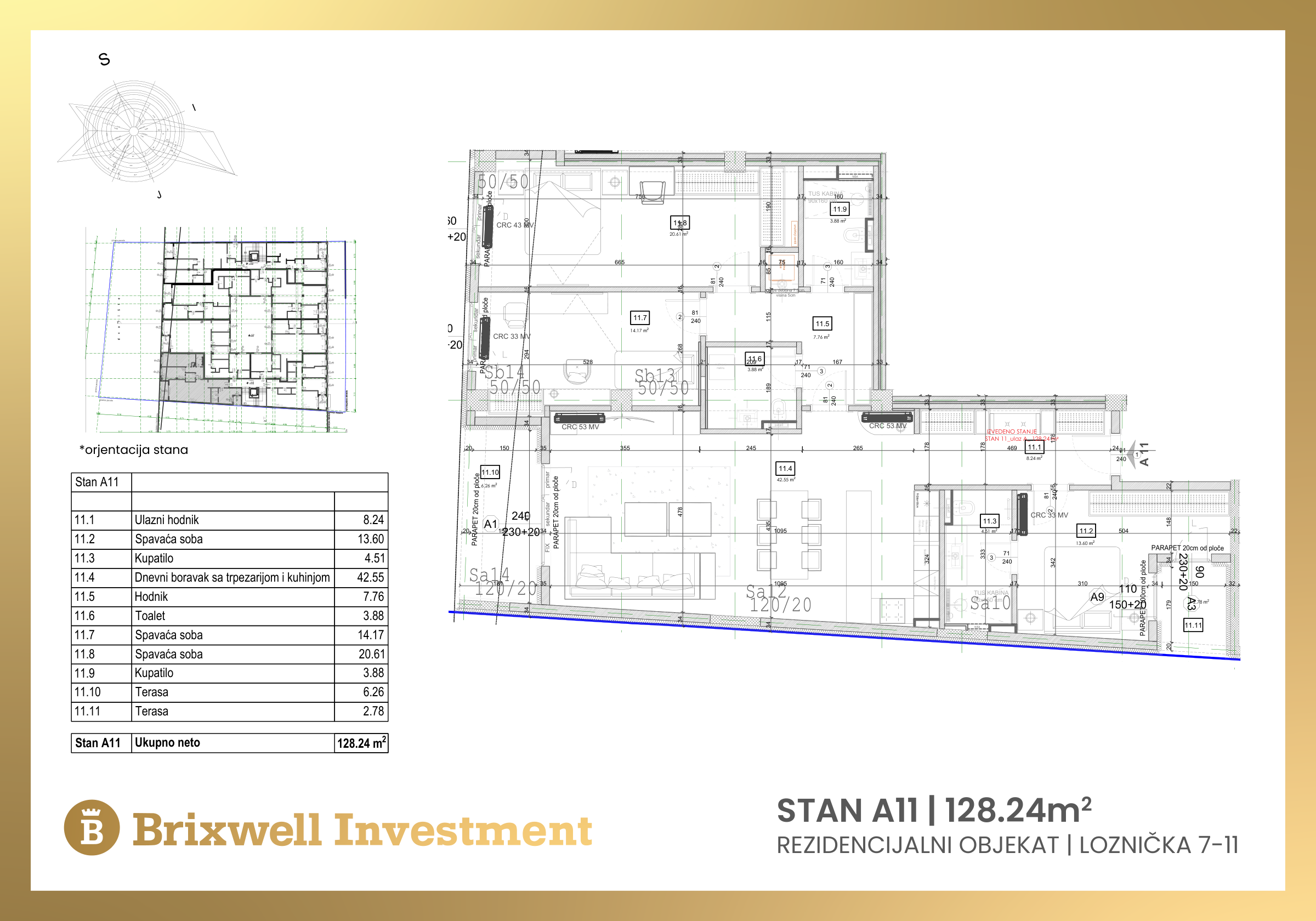 Loznička 7, 9 and 11 is a building located opposite our newly built building Loznička 8 and 10. The brick, stone and glass facade will ideally fit into this street because of our building with a similar facade. The interior of the building will be decorated with a spacious foyer that divides the building into two slats. In the middle of the building there will be an atrium garden with an area of over 130 square meters.